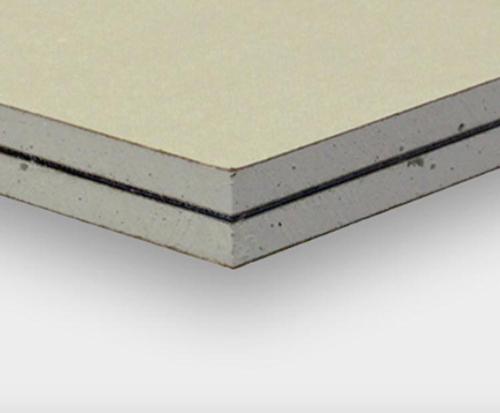 QuietRock 530 is a versatile, high performance sound damping gypsum panel that delivers superb noise reduction with shear and impact resistance. This super panel is UL Certified for use on several fire-resistance rated assemblies and installs and finishes like other paper faced gypsum board but will require a saw to cut. In certain installations the steel core may disrupt cellular and Wi-Fi connectivity. QuietRock 530 is also available with radio frequency shielding.